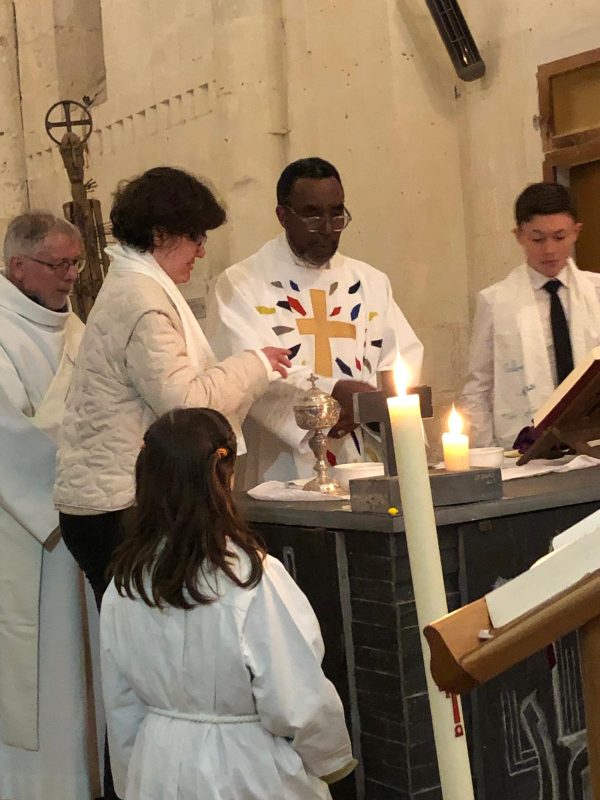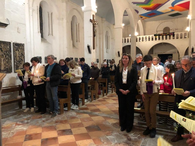 Pour montrer que la lumière du Christ se diffuse à tous, cette lumière a été transmise aux fidèles présents dans l’église