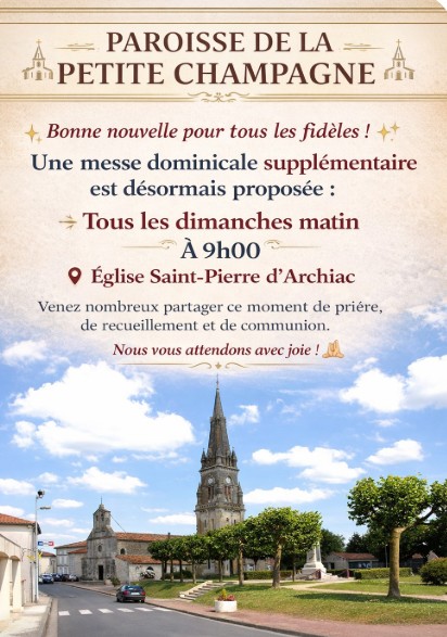 Messe supplémentaire tous les Dimanches matin à St Pierre d’Archiac