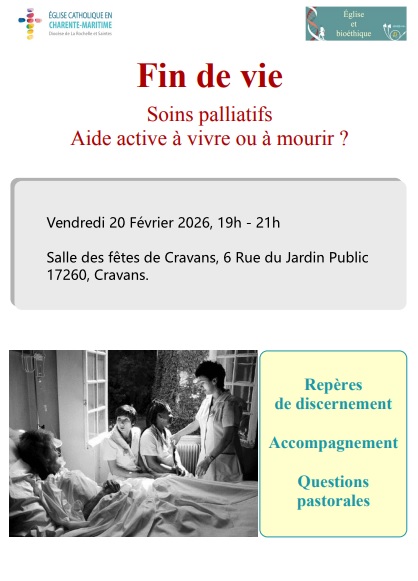 La paroisse de Gémozac organise une soirée, pour le temps du carême : Soins palliatifs Aide active à vivre ou à mourir ? Repères de discernement Accompagnement Questions pastorales avec Katia Mickaël, médecin et responsable du service Eglise et bioéthique du diocèse, et une bénévole en soins palliatifs. Vendredi 20 février à 19h à la […] |