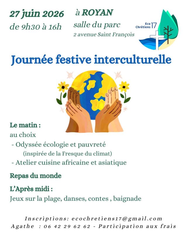 2 avenue Saint-François, Royan 2 avenue Saint-François, Royan, FranceBonjour à toutes et à tous, nous renouvelons notre journée festive interculturelle, cette fois-ci à Royan avec en primeur l'animation de l'Odyssée écologie et pauvreté, outil créé par le secours catholique inspiré de la fresque du climat et en parallèle, nous confectionnerons le repas métissé pour le midi L'après midi, nous improviserons avec les joyeuses contributions de […]