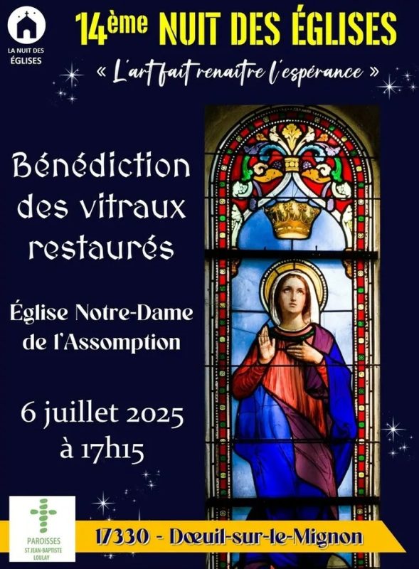 Les vitraux de l’église Notre-Dame de l’Assomption ont tous été restaurés au cours des deux dernières années. Dans le cadre de la Nuit des églises, après une présentation de chacun d’eux, ils seront bénis.