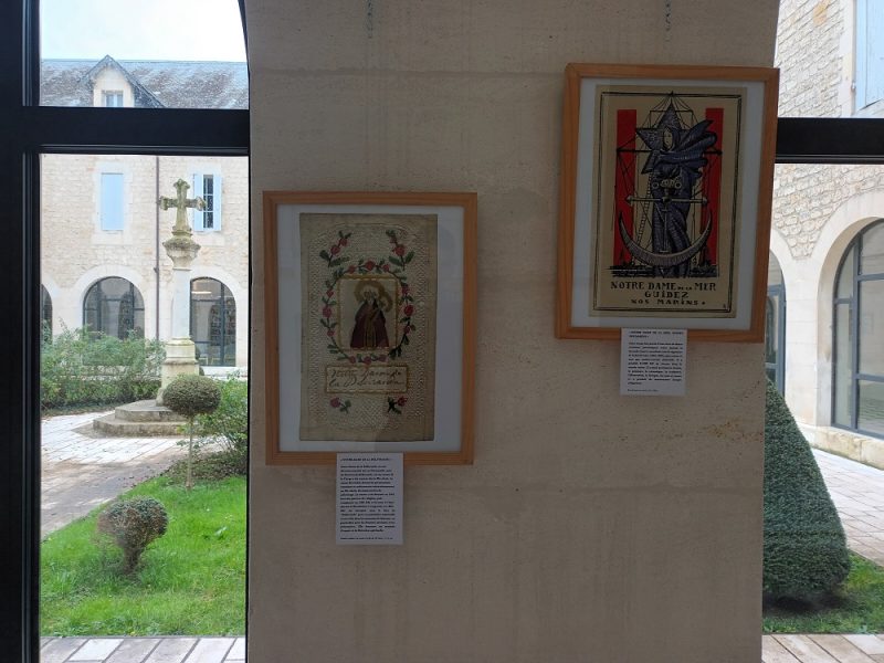 (*) Thèmes des expositions disponibles : Pierre, un saint en images ; Bateaux Sacrés – Sacrés Bateaux ; Quelle Histoire ! Un siècle d’Histoire de France dans les images pieuses ; Petit Jésus, un modèle d’enfance ; L’année Saint Joseph ; Ces saints qui protègent en Charentes ; Musique sacrée ; Une piété écologique – Faune & Flore.