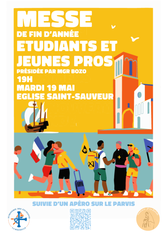 Rendez-vous le mardi 19 mai à 19h, église St Sauveur à La Rochelle. La messe sera suivie d’un temps convivial sur le parvis.