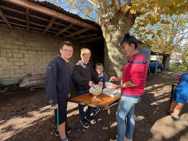Cette journée a commencé à 14h chez les Sœurs pour faire les gâteaux de la Toussaint (gâteaux Potiron)