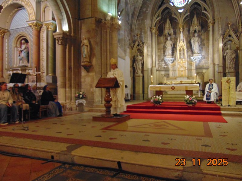 La messe concélébrée a été dite devant une assemblée nombreuse et recueillie. Dans son homélie, Monseigneur Bozo nous a invités à réfléchir sur le sens du mot royauté et il nous a montré combien la Royauté du Christ n’a rien de commun avec les gouvernances temporelles. A la fin de la messe, Monseigneur Bozo a remercié chaleureusement toutes les personnes impliquées dans le bon déroulement de la célébration. Le père Pablo Rombolá a ensuite invité tous les participants à se réunir au bas de l’église pour un