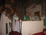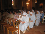 Jeudi 19 juillet, sur le coup de midi, les cloches de l’église sonnaient à toute volée pour annoncer l’arrivée de cette délégation venue du pays du Soleil Levant, en partie composée de religieuses et de quelques laïcs et conduite par l’archevêque de Nagasaki et d’un missionnaire français. L’eucharistie était concélébrée par 7 prêtres, dont le père Genet, vicaire épiscopal, représentant l’évêque, en présence de Monsieur le Maire et son épouse. Les mains jointes, le recueillement des religieuses, l’alternance de la langue française et japonaise rendaient cette célébration très prenante. A la fin, notre sympathique diacre qui s’était fait fort de faire l’envoi en japonais a déclenché l’hilarité de nos invités ! Il faut dire que du japonais débutant mâtiné d’accent charentais prononcé, cela n’avait rien de triste…