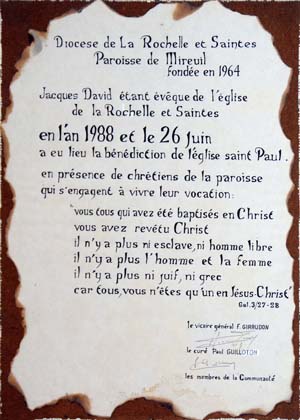 L’église Saint-Paul de Mireuil, située dans un quartier en pleine expansion de La Rochelle, était à l’origine un centre catéchétique provisoire construit dans les années 1960. Destiné aux activités paroissiales et à la catéchèse, ce bâtiment modeste n’avait pas été conçu pour accueillir durablement des célébrations liturgiques. Un autre projet d’église avait été envisagé, à la place de l’actuelle « Passerelle », à coté de la place de l’Europe, mais n’a pas abouti, du fait de son éloignement du centre du quartier, et du coût des travaux, ce qui a conduit le diocèse à réorienter ses efforts vers la transformation de cette structure existante.