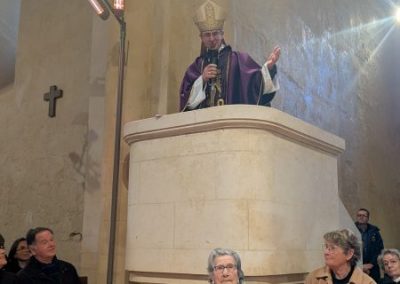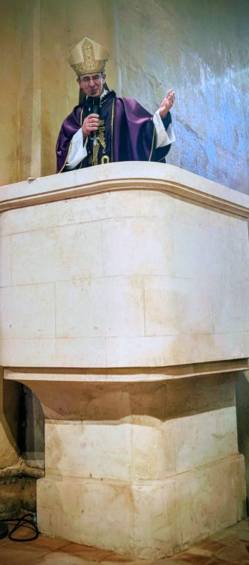 Monseigneur Pierre-Antoine Bozo, notre Eveque, en plein homélie devant l’assemblée, du haut de la chaire.