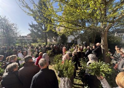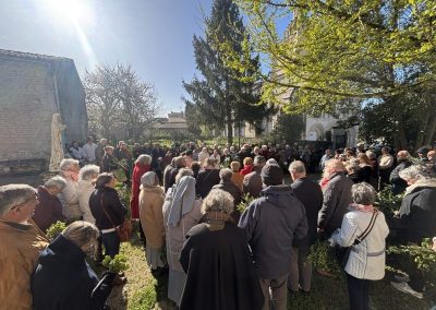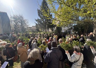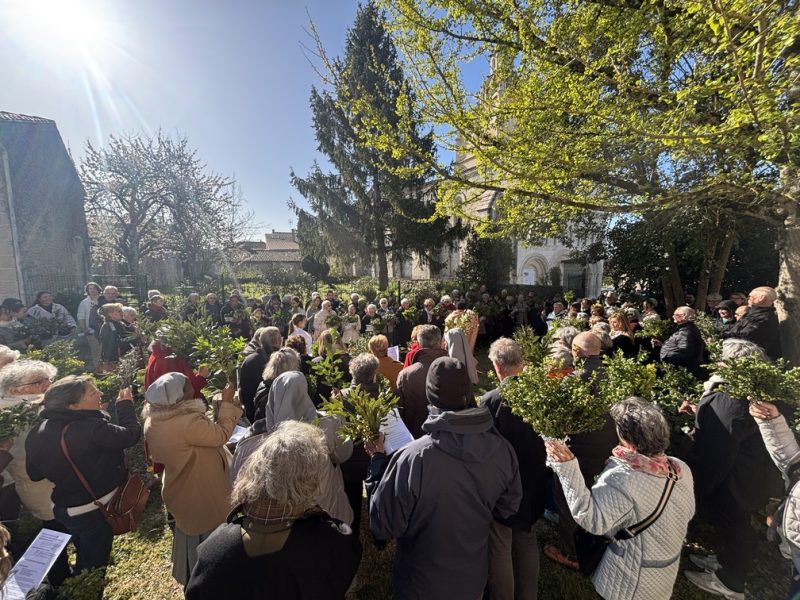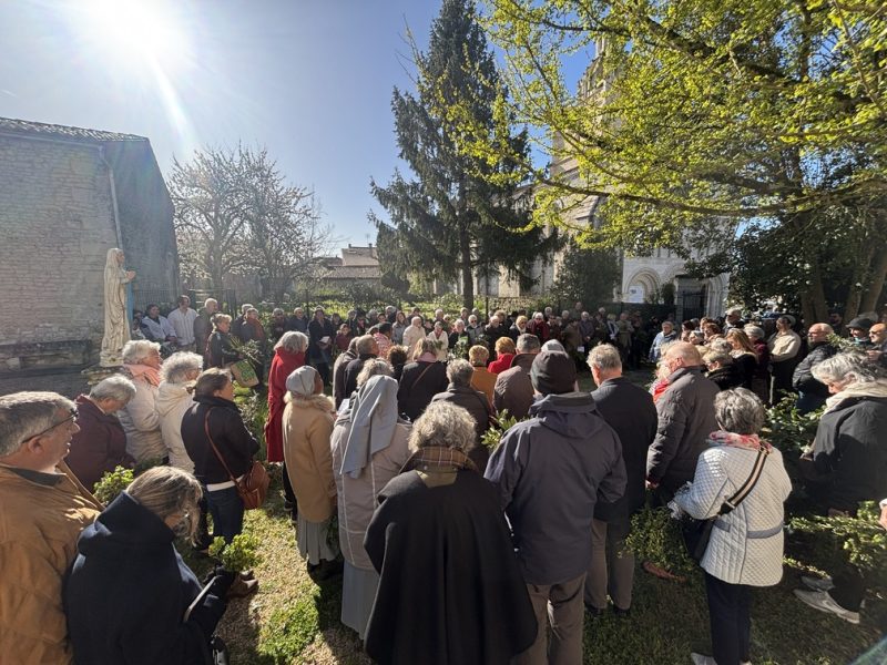 La messe des Rameaux du dimanche s’est poursuivie, avec une fois encore, plus d’une centaine de personnes, rassemblée pour l’ouverture de la célébration des Rameaux dans le jardin du Monastère de la Communauté des Soeurs de la Lumière du Christ, à Saint Fort sur Gironde. Père Victor a pu rappeler lors de son homélie à l’église tout le sens de l’humilité profonde de la Passion du Christ.