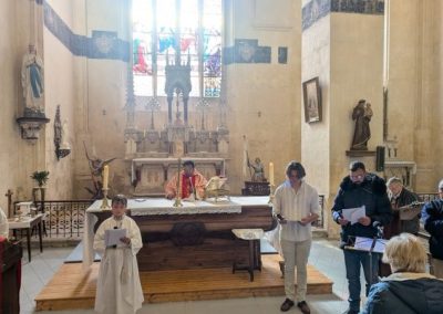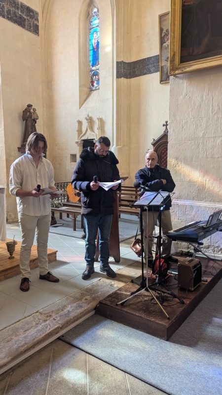 Ce premier moment fort qui marque la début de la semaine Sainte a débuté samedi 28 mars, par la messe anticipée des Rameaux, célébrée à Saint Bonnet sur Gironde par le Père Victor. Quel moment de grâce divine de voir l’assemblée, soit une centaine de personnes, se réunir, petit à petit, pour rejoindre les bancs de l’Eglise de notre petite paroisse vaillante!