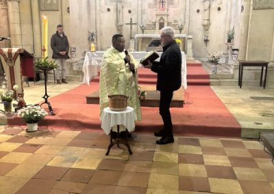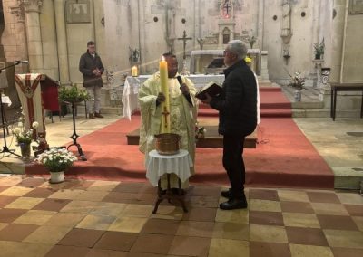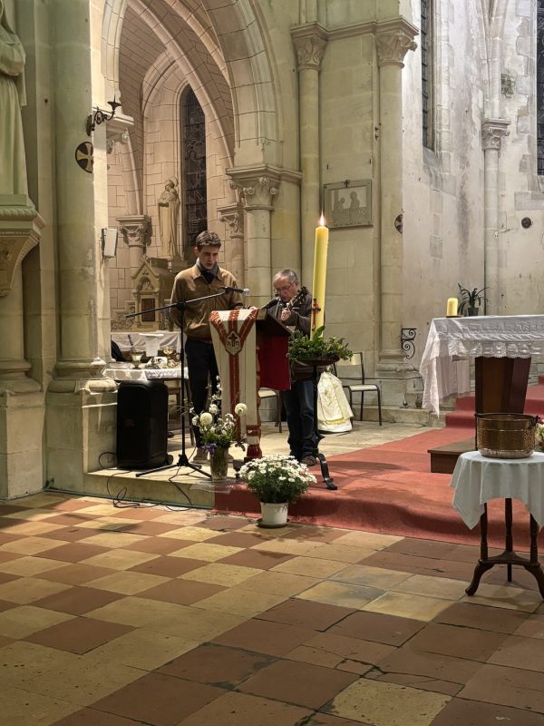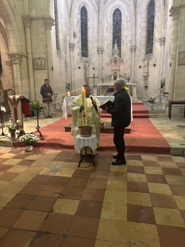 La célébration s’est poursuivie avec la liturgie eucharistique, unissant la communauté dans une même joie partagée. Ce fut une soirée de communion intense, marquant avec éclat le début des fêtes de Pâques à Saint-Genis-de-Saintonge.