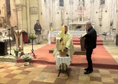 Le samedi 4 avril au soir, la communauté s’est rassemblée en l’église de Saint-Genis-de-Saintonge pour célébrer la Veillée Pascale, le point culminant de l’année liturgique. Dans une atmosphère empreinte de recueillement, les fidèles ont vécu le passage des ténèbres à la Lumière du Ressuscité.