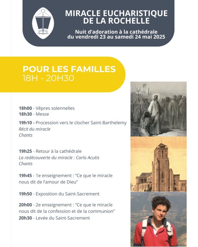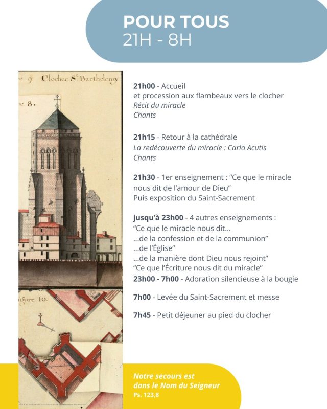 - de 23h à 7h, une nuit d’adoration ponctuée des récits de grands miracles eucharistiques ✨