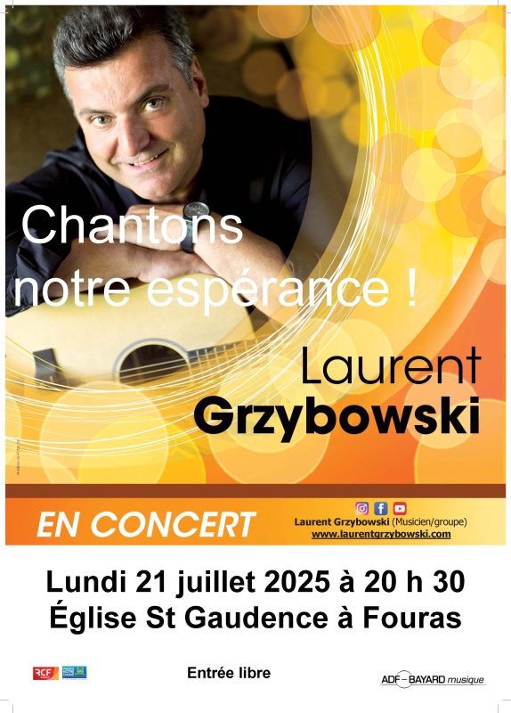 A l’occasion du Jubilé, le chanteur chrétien Laurent Grzybowski viendra animer une veillée de prière et donner un témoignage :