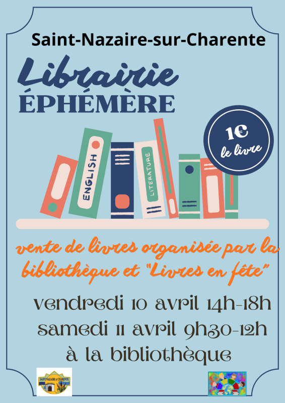 A Saint Nazaire sur Charente, le vendredi 10 avril et le samedi 11 avril, vente de livres organisée par la bibliothèque et « livres en fête »