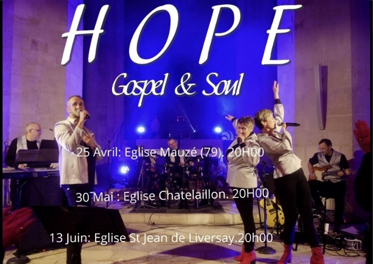 Samedi 13 juin : concert à 20h du Groupe Hope (Gospel de La Rochelle) dans l’église de St Jean de Liversay