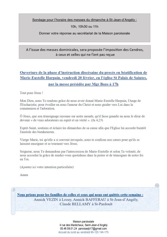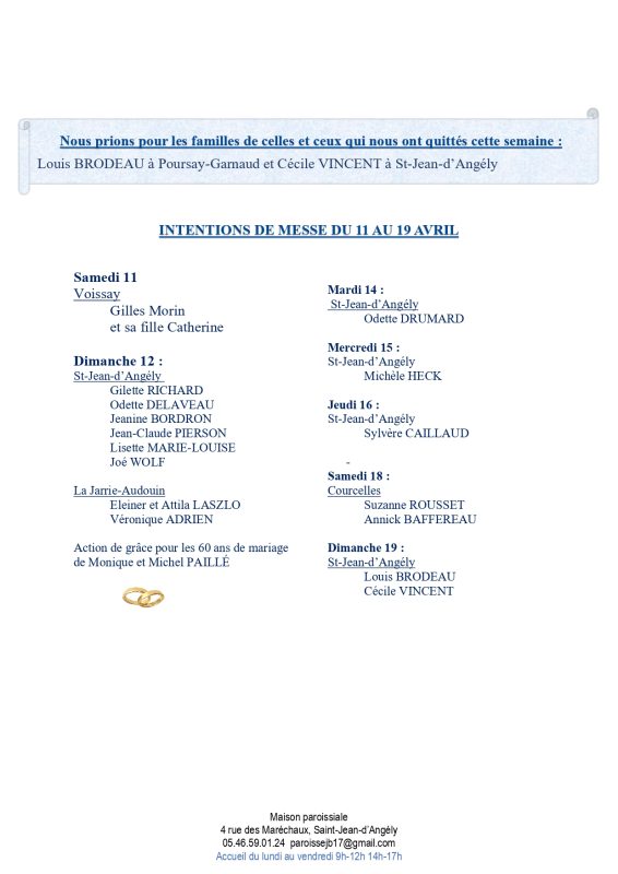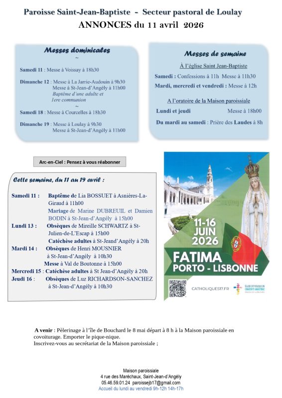 ANNONCES : du 12 au 19 Avril 2026