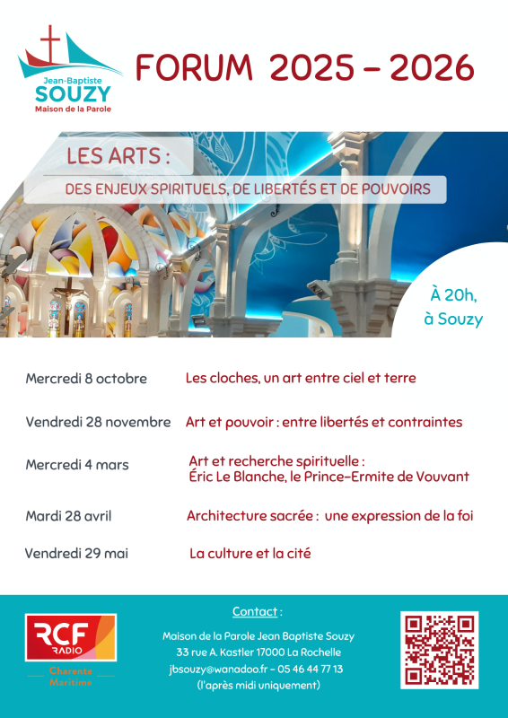 La soirée initialement prévue le mardi 27 janvier, sur le thème "Architecture sacrée : une expression de la Foi", est reportée au mardi 28 avril 2026. Merci de communiquer cette information autour de vous.